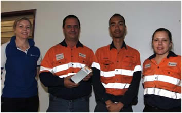 Celebrating Moranbah North mine's Coal Handling Preparation Plant being named this year's Minerals Processing Plant of the Year (from left) Administration Assistant Dearne Warby-Dent, CHPP Manager Clinton Vanderkruk, Graduate Process Engineer Giovanni Navarro and Process Engineer Nicola Blight.