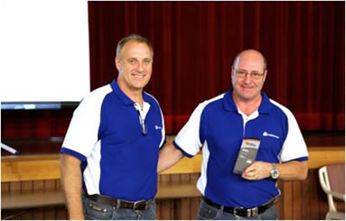 Head of Underground Excellence Dieter Haage (left) congratulates General Manager Jim Canning on Moranbah North winning this year's Coal Mine of the Year Award.