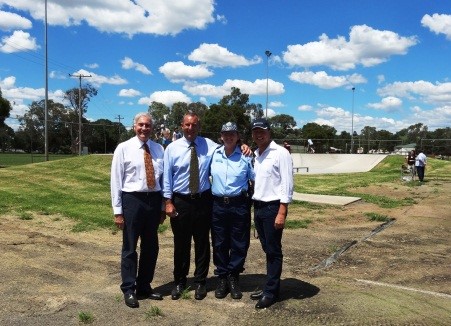 Pictured: Anglo American’s Matt Frodsham with Upper Hunter Police Youth Officer Sheree Gray, State MP George Souris, Upper Hunter Mayor Michael Johnson and Sheree Gray and George Souris and Michael Johnson officially cut the ribbon to the skate park.